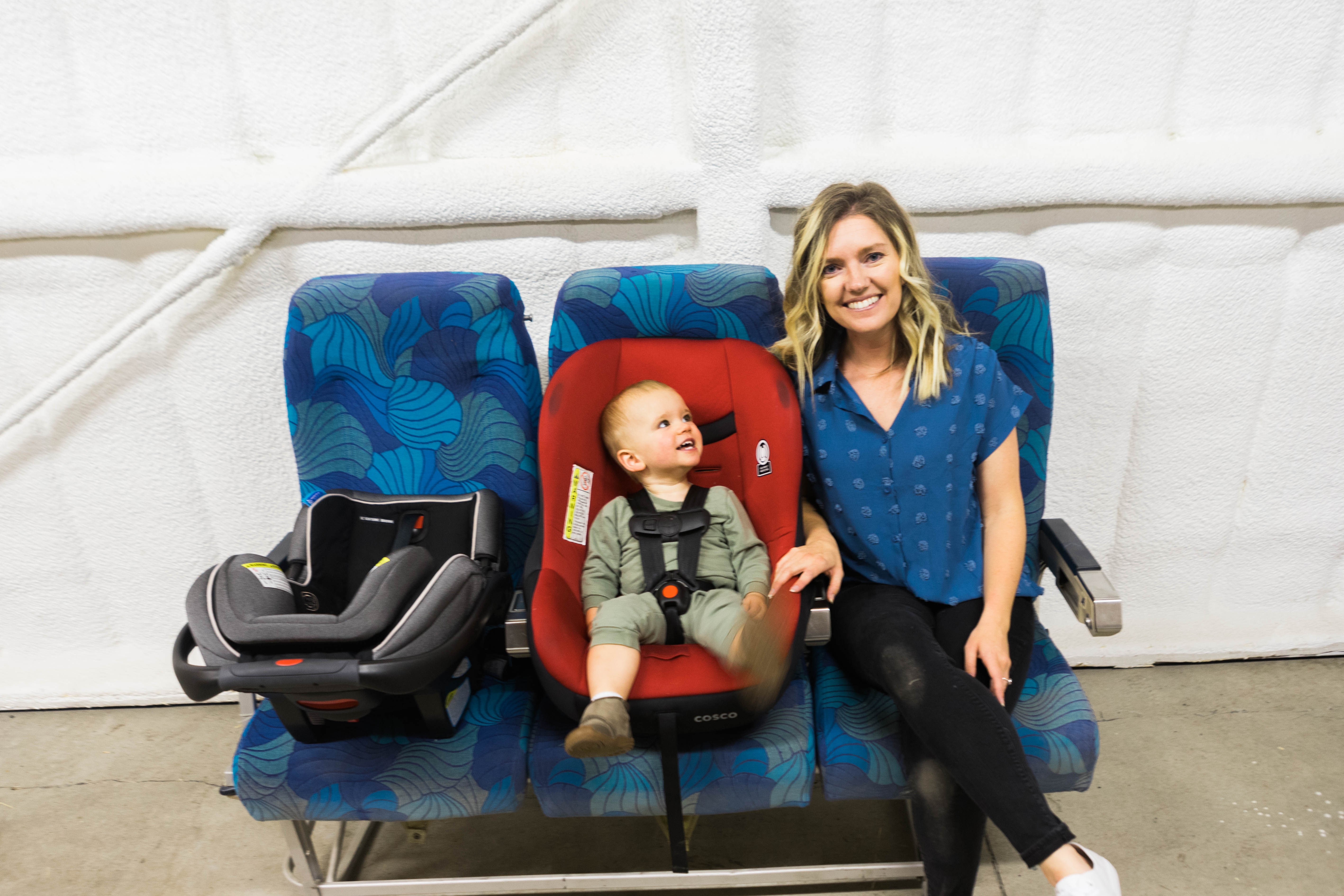 How to carry your car seat in the airport Examples of how to carry your car seat through the airport What do I do with my infant car seat base? How to bring your car seat on the plane How to install an infant car seat on the plane How to install a rear facing convertible car seat on the plane How to install a forward facing convertible car seat on the plane How to check or gate check a car seat Which car seats are allowed on flights? Example 1 of locating FAA sticker Example 2 of locating FAA sticker Are there spots in a plane where a car seat is NOT allowed? A common misunderstanding How to help a buckle not end up in the back of your baby How to prevent airplane seat buckle from ending up in the middle of the car seat (video)